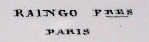 В 1834 году компания получила почетное упоминание на выставке в Париже. Компания продавала часы, часы для путешествий и настенные часы. В то время как четыре брата Раинго были впервые признаны часовыми мастерами, в 1841 году они добавили в свой репертуар бронзы и предметы интерьера. Известный своим качеством ormolu (позолота), к 1860 году Raingo Frères предоставил бронзы, украшения (украшения) и столбы для квартир императора Наполеона III и его жены, императрицы Евгении, примеры которой сейчас находятся в коллекция Лувра. Они производили репродукции антиквариата, а затем выпускали небольшие модели произведений современных художников, таких как Pradier, Carrier-Belleuse и Auguste Moreau. Они также сотрудничали со знаменитым эбенистом Франсуа Линке.