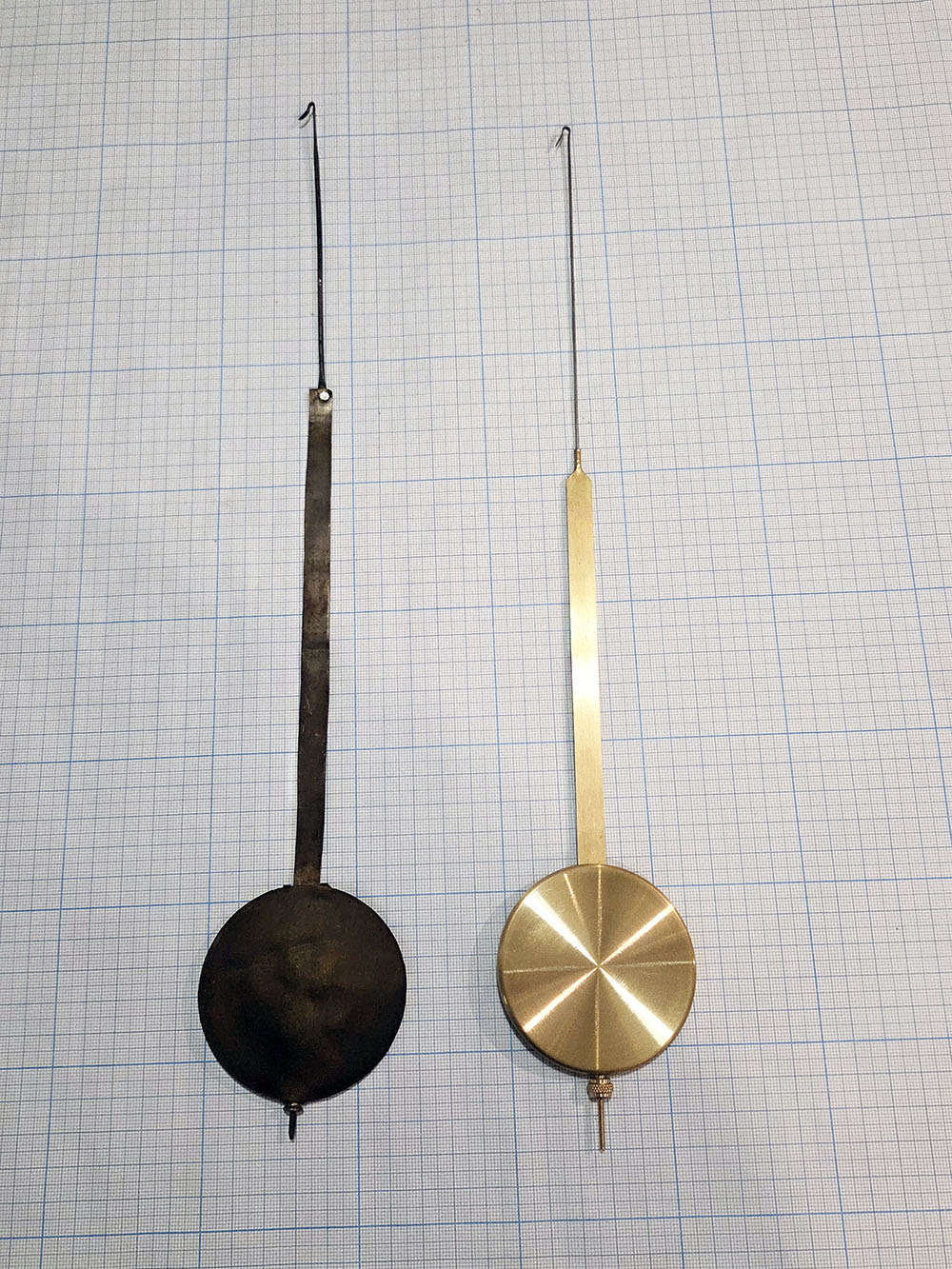 Если необходимо, мы отполируем любые детали механизма. Вот пример полировки маятника и циферблата часов, а также чистка эмали от загрязнения .